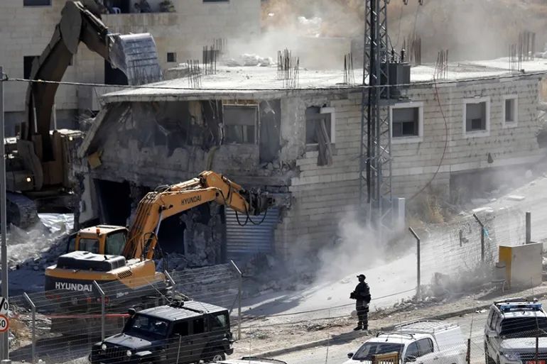 Demolishing using bulldozers and tanks